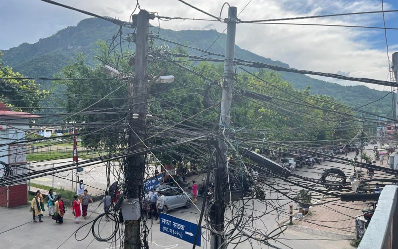 अशोक विश्वकर्मा / दुलेगौँडा । देशका अधिकाँश शहरका बिजुली पोलमा देखिने गन्जागोल तारलाई भूमिगत गर्न नसक्दा शहर बजारको सौन्दर्यमा असर परिरहेको छ । तनहुँका अधिकाँश बजारमा निजि सेवा प्रदायक नेट तथा केवल सञ्चालकहरुले अनुमति विना नै अब्यवस्थित रुपमा ताल टाग्ने गरिरहेका छन् । दुलेगौँडा बजारका पोलहरुमा समेत यस्ता कम्पनीहरुको तार यत्रतत्र देख्न सकिन्छ ।