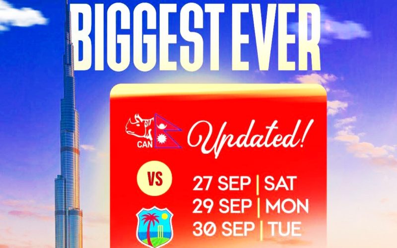 नेपाल क्रिकेट संघ (क्यान) को आयोजनामा हुने यो ऐतिहासिक सिरिज संयुक्त अरब इमिरेट्स (युएई)मा तय भएको हो। सुरुमा सरजाह क्रिकेट स्टेडियममा हुने खेलहरू २७, २८ र ३० सेप्टेम्बरमा हुने कार्यक्रम बनाइएको थियो। तर, क्यानले सार्वजनिक गरेको नयाँ तालिका अनुसार अब खेलहरू २७, २९ र ३० सेप्टेम्बरमा हुने भएका छन्।